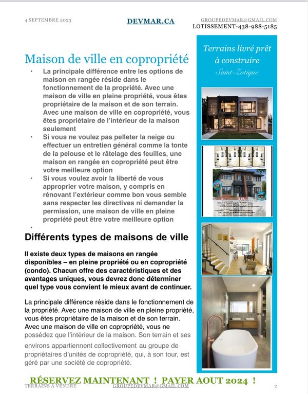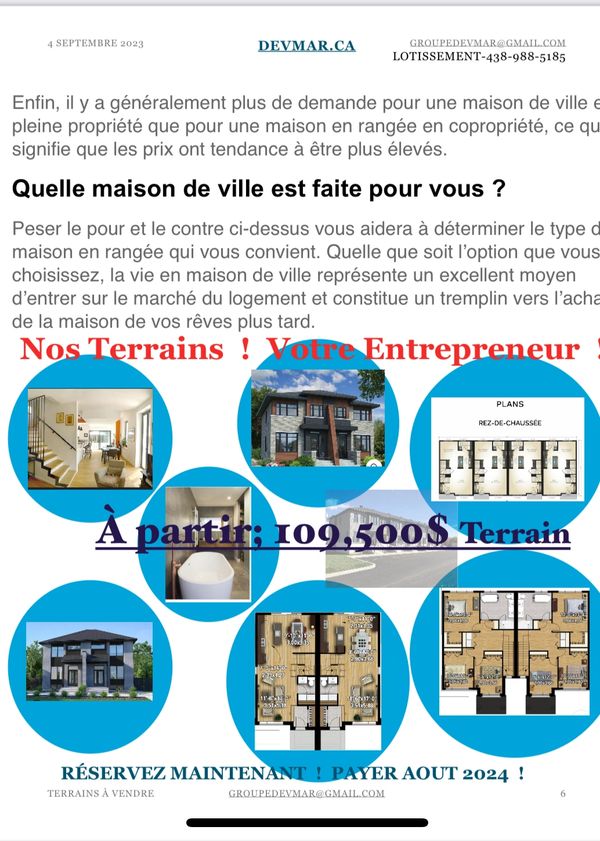 NOS TERRAINS OFFRES LA CONSTRUCTION de différente types d’habitations multi-résidentielles